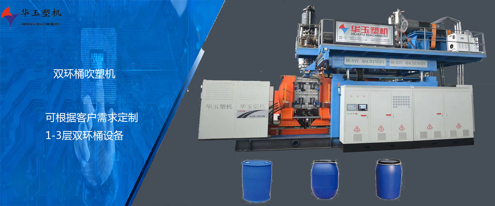 濰坊市華玉塑料機(jī)械有限公司創(chuàng)辦于貳零零貳年,是超大型全自動(dòng)中空吹塑設(shè)備專(zhuān)業(yè)生產(chǎn)廠家。公司融合國(guó)內(nèi)外先進(jìn)技術(shù)和理念,專(zhuān)業(yè)設(shè)計(jì)、生產(chǎn)、銷(xiāo)售一層到十層的大型全自動(dòng)中空成型機(jī)組。我公司生產(chǎn)的各型號(hào)吹塑機(jī)可生產(chǎn)50升到30,000升的各類(lèi)塑料水桶,噸桶、雙環(huán)桶、水馬、路錐、隔離墻托盤(pán)、桌板、浮筒、皮劃艇、工具箱包等中空制品。優(yōu)良的品質(zhì)、穩(wěn)定的性能、優(yōu)越的性?xún)r(jià)比使公司產(chǎn)品不僅暢銷(xiāo)國(guó)內(nèi)市場(chǎng),并出口到亞洲、東南亞、中東、歐洲、北美、南美、非洲等80多個(gè)國(guó)家和地區(qū),深受客戶(hù)的好評(píng)...